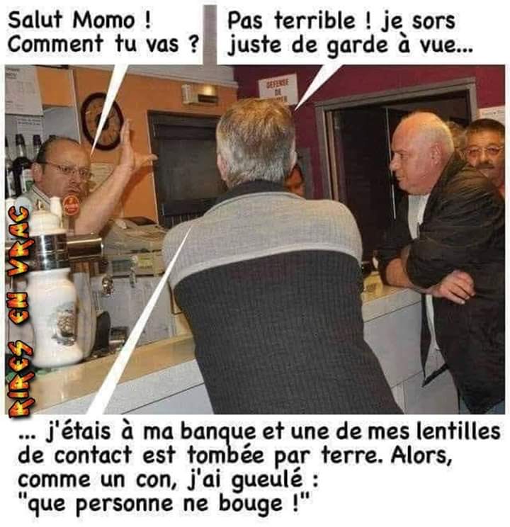 allez une comique pour ce matin, pas très courageuse je me suis levée avec un mal de crâne incroyable, ca faisait quelques mois que çà ne m'était pas arrivé