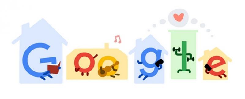 Le doodle nous invite à rester chez nous pour que l'on contribue a arrêter le coronavirus.