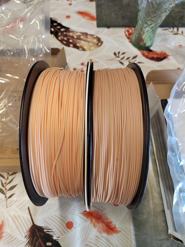 Nous avons commandé du filament chez deux fournisseurs différents et sous le même intitulé concernant la couleur et bien pas du tout pareil un peu comme les bains avec la laine Voilà Ray a commencé l'impression d'une nouvelle poupée qui du coup sera de couleur légèrement différente