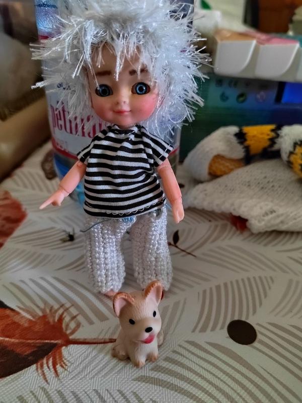 Il y avait un chien genre chihuahua avec la tenue et je l'ai un peu customisé car il brillait de mille feux et il n'y avait que 3 points noirs pour les yeux et la truffe