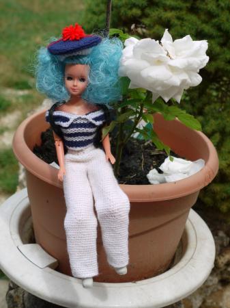 Je lui ai enfilé le costume de marin que j'ai terminé lundi. Je trouve que ca lui va parfaitement bien.
