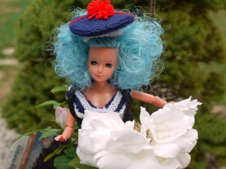 J'ai retrouvé dans un carton cette pauvre petite avec des cheveux qui faisaient pitié, bien que ce ne soit pas une barbie, je lui trouve une bouille trop craquante, en plus elle est articulées un peu partout et pour les photos ca c'est plutot mieux.