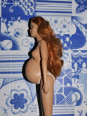 et dernière prise de vue, installation de la poupée par mon homme qui m'affirme que les femmes enceintes tiennent tres souvent leur ventre ainsi