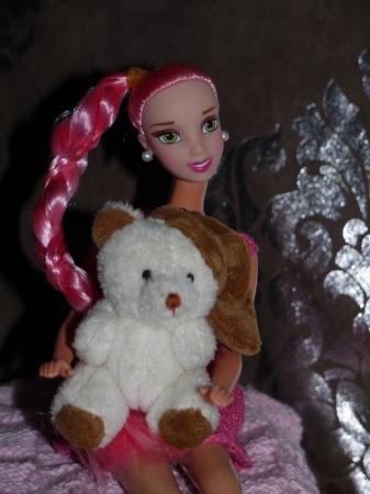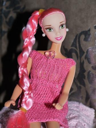 tout çà, pour en venir que la tête de cette poupée me plait mais le corps ... horrible, alors j'ai acheté quand meme la poupée aux cheveux roses pour 3.49 euros.