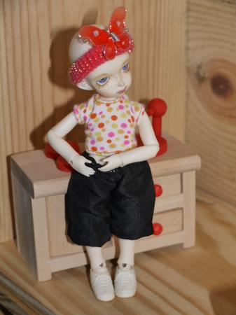 En fait mon mannequin étant plus petit en hauteur qu'Andréa, celle ci se retrouve avec un bermuda et non un pantalon.