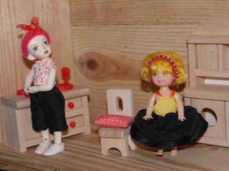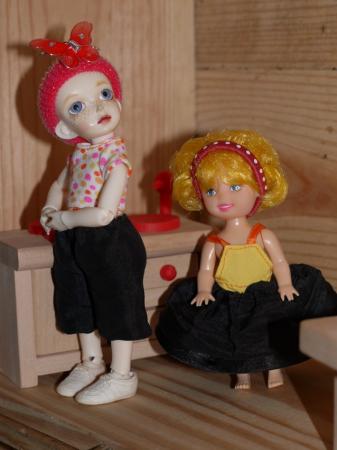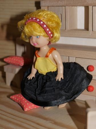 Voici le résultat de la jupe sur ma poupée "mannequin" offerte par mon chéri pour la somme d'un euro, achetée surtout pour la robe qu'elle portait !!