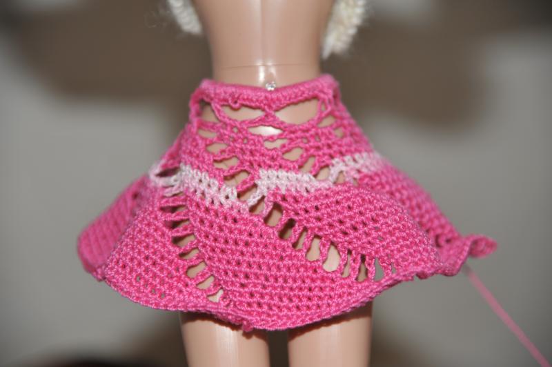 Et bien ma voisine avait fait un joli napperon au crochet en lurex, et j'ai pensé que je pouvais l'adapter pour faire une belle jupe.