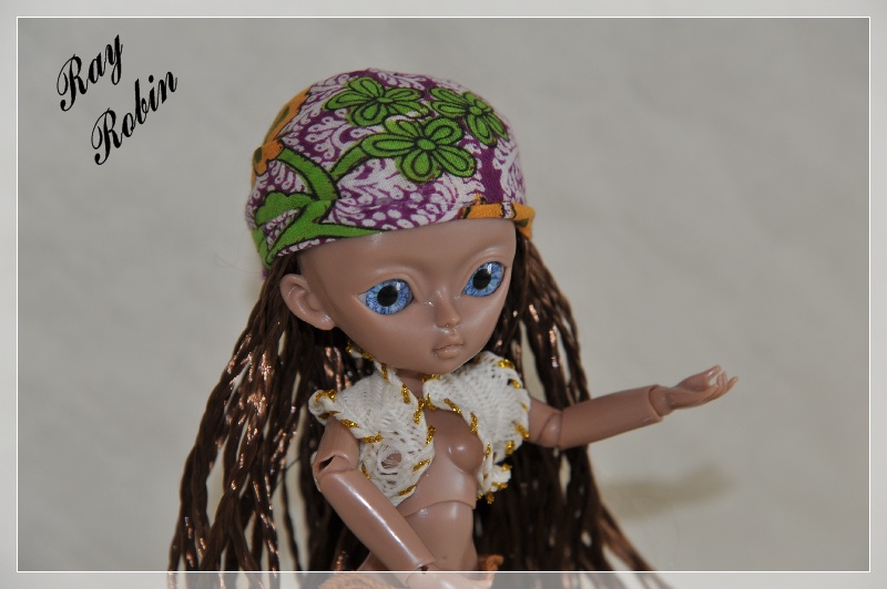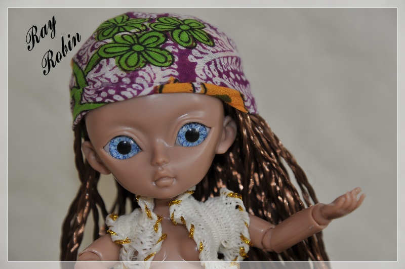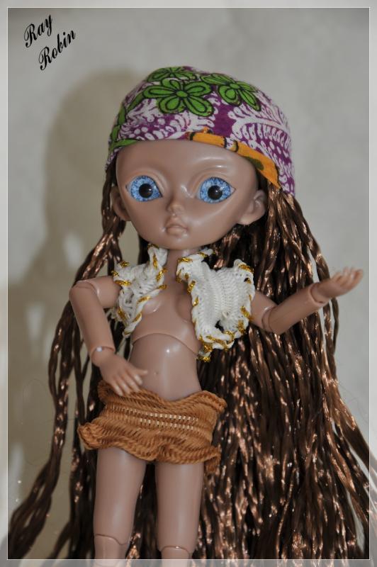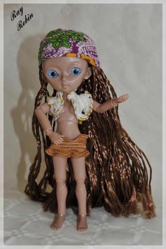 Elle est arrivée cette demoiselle à grosse tête, tenue improvisée avec deux chouchoux, pas de chaussure à sa taille dans ma boite à chaussures doll, le seul truc qui lui va ?