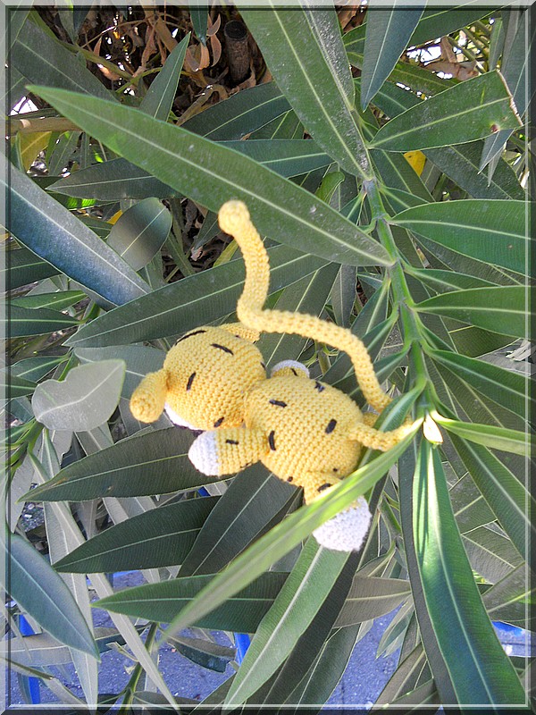 Une chenille rigide a été glissé à l'intérieur de la queue afin de pouvoir lui donner la forme que l'on veut.