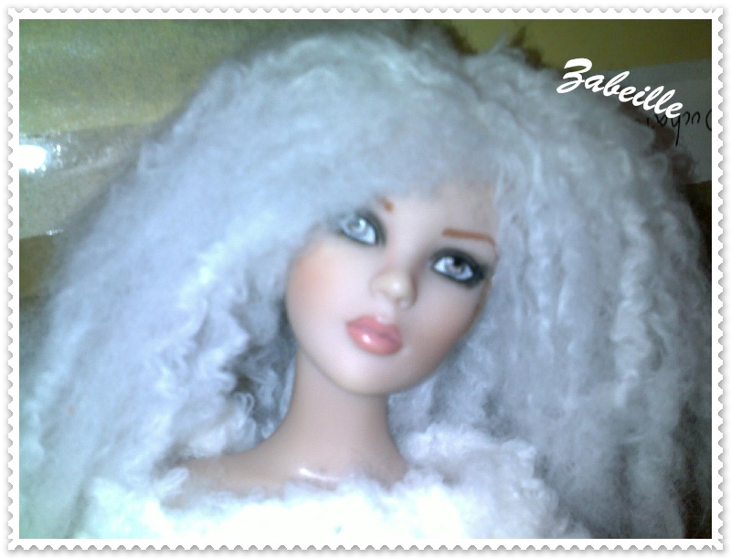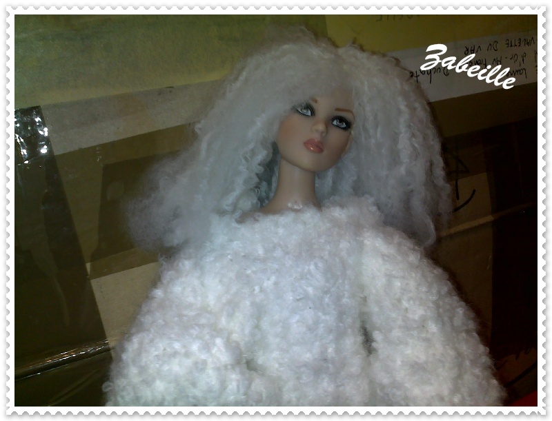 J'ai donc fait cette perruque avec la laine reçue de Cat en échange des feuilles de ginkgo biloba.