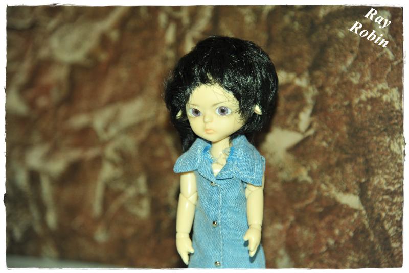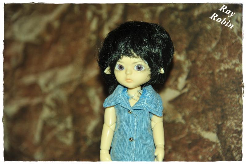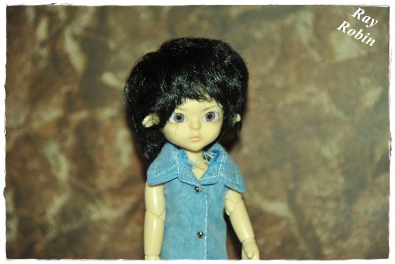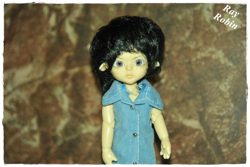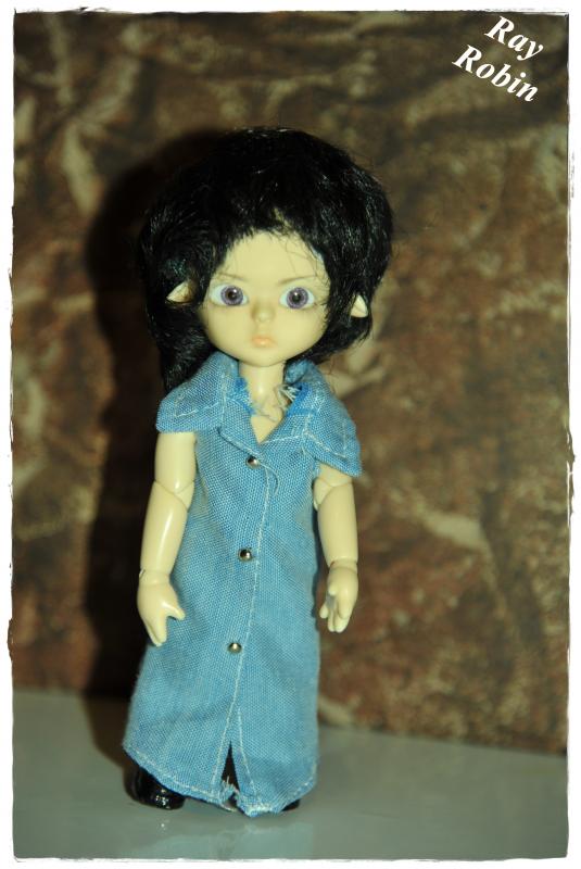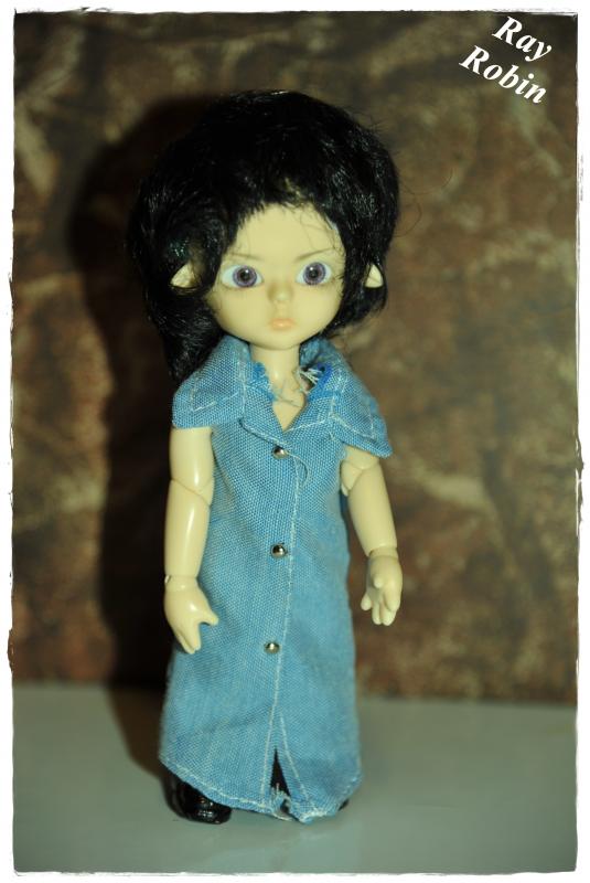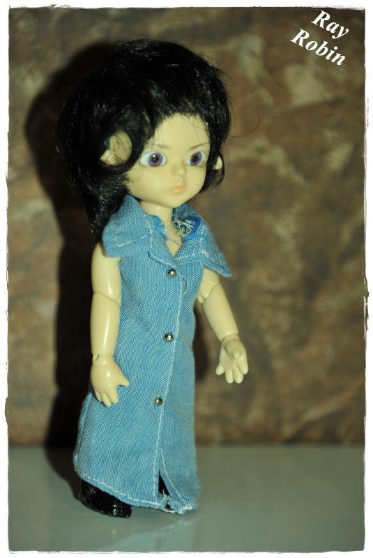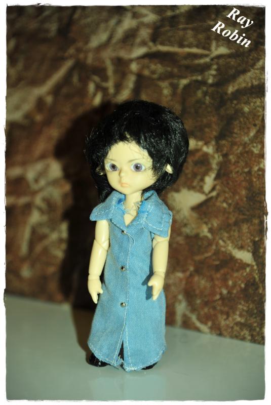 Bien que je n'ai rien à lui mettre, du c oup j'ai trouvé un haut pour Barbie en jean qui me fait penser a ces longs manteaux des cow boy et la perruque brune courte (celle qui va a tout le monde).