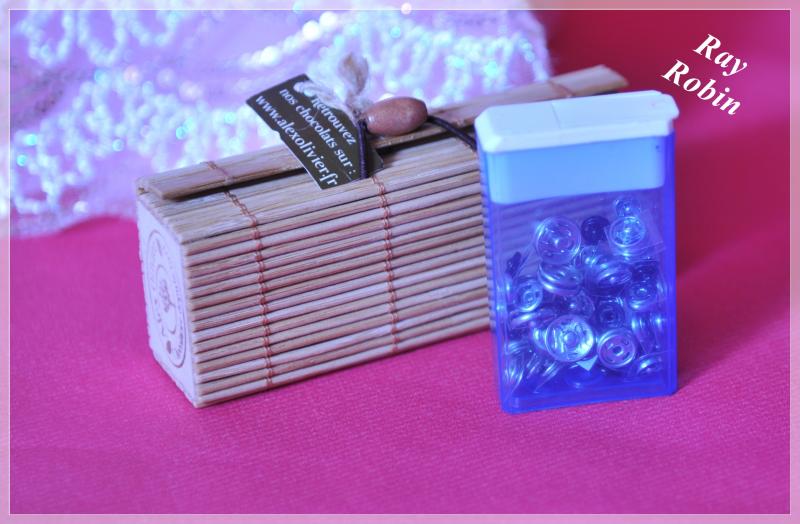 Alors elle m'a apporté une boite tic tic vide que j'ai déjà complétée des boutons pression, des petites boites qui contenaient des chocolats et qui peuvent faire malle de voyage pour les msd