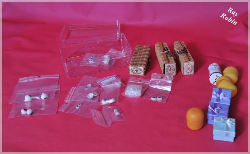 Elle m'a ramené des petits sachets à zip. Idéal pour y mettre les yeux. On voit de suite la taille et la couleur, c'est mieux que d'ouvrir toutes les boites que j'ai mises à droite de la photo.