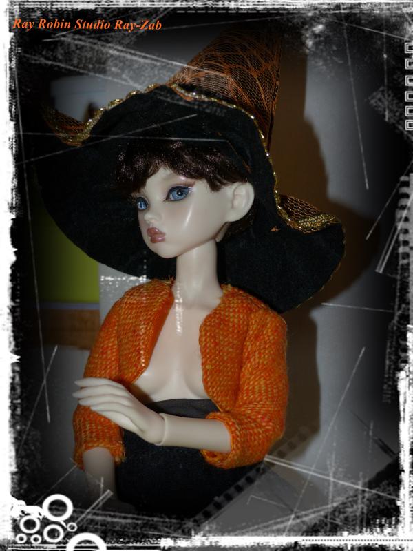 J'ai trouvé dans les déguisements d'halloween à gifi ce chapeau qui était sur un serre tête, il a donc été décollé et l'intérieur ouvert et voila ce que ca donne sur ma doll