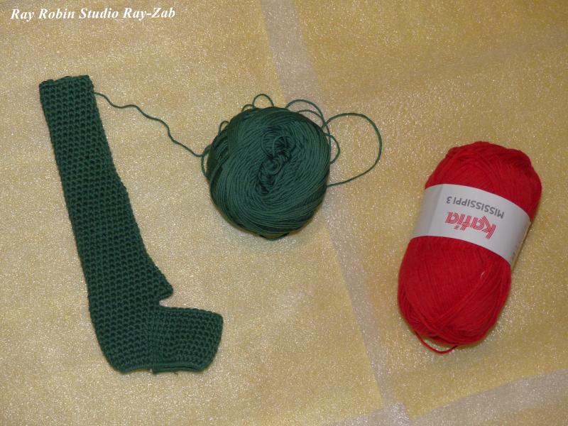 Tout d'un coup elle a une lumière, elle sort du magasin derrière et reviens avec du coton "vert Noël" et le rouge qui va avec.
