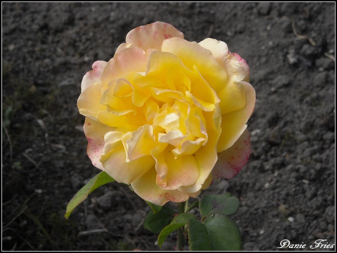 Dernière rose jaune, je pense qu'il va trépasser cet hiver, il n'a plus qu'une branche, je me suis fait avoir à l'achat, il a 3 ans et m'a donné 3 roses ! dommage il était beau