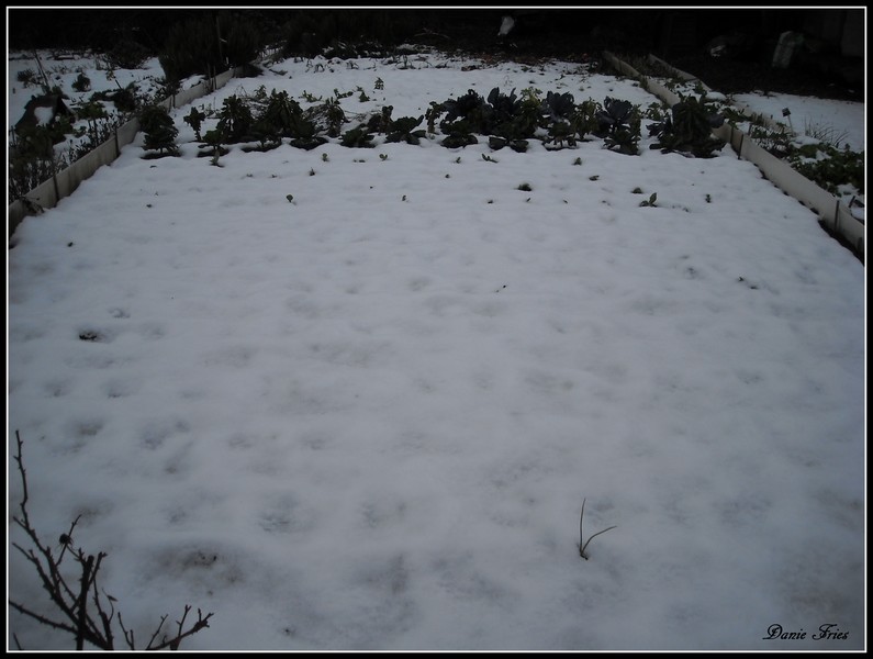 Il reste encore une belle couche de neige sur les épinards d'hiver et les choux