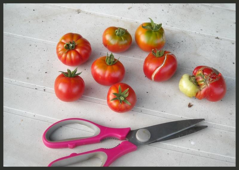 Première récolte de tomates miniatures, en principe se sont des tomates à farcir !!!