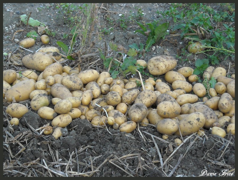 pour cent plans c'est vraiment pas terrible comme récolte, de plus elles sont très petites, et certaines sont malades, ou grignoté par des mulots ou rats taupiers, d'ailleurs Chouchou en attrape un par jour en moyenne, il bosse bien la nuit le ro'minet !