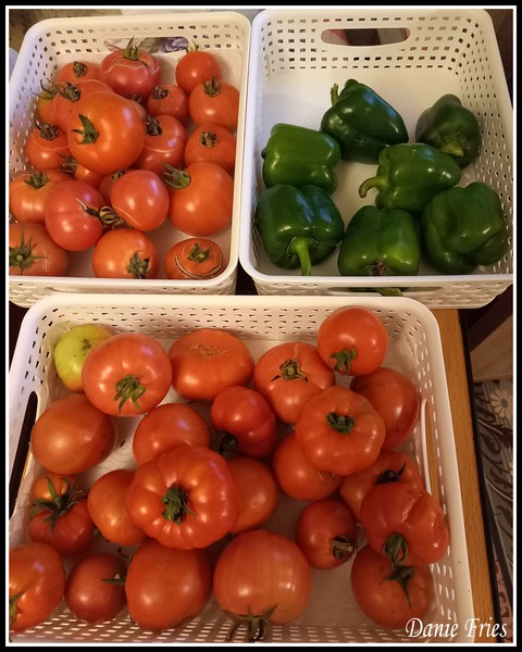 Et bien je ne croyais pas en avoir autant quand même, je suis vraiment contente. En courses j'ai acheté quelques bananes pour mettre avec les poivrons en espérant les faire rougir ! on verra si ça marche, affaire à suivre !