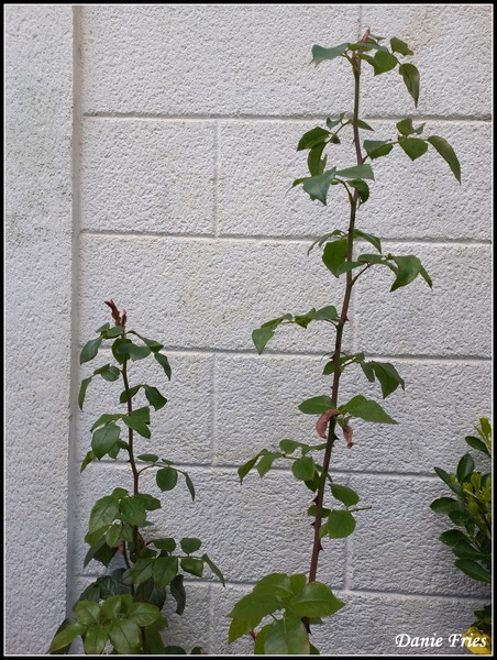 Curieux ce rosier quand même, il n'a pas perdu ses feuilles de l'an dernier ! il est pourtant dans un pot, à tout vent tout temps.