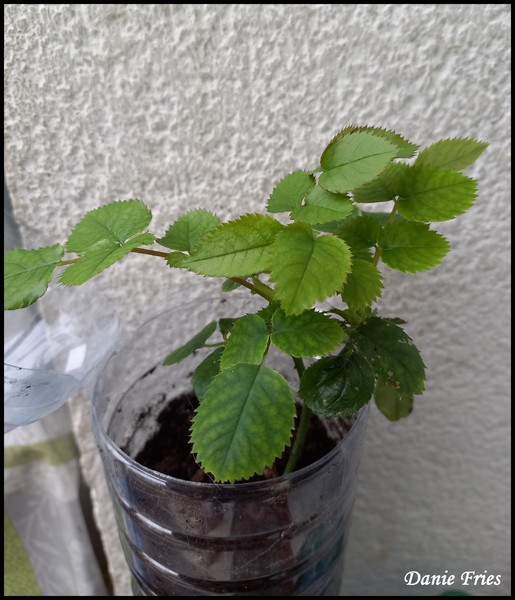 et ici, la bouture réussie, à l'étouffé, la prochaine fois je prendrais les racines en photo, il est bien vigoureux , tout beau, je me demande comment il va évoluer, s'il va repprendre en pleine terre et s'il va fleurir et quand ! je suis impatiente je l'avoue