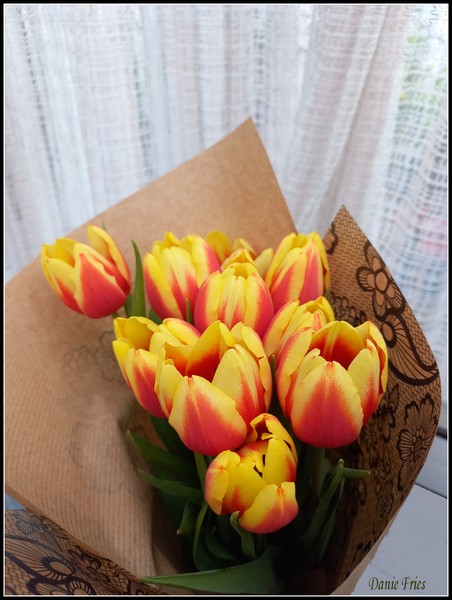 Un petit bouquet de tulipes pour vous souhaiter un bon week end, malheureusement le temps qui était magnifique aujourd'hui va changer dès demain ! C'était trop beau ! snif !