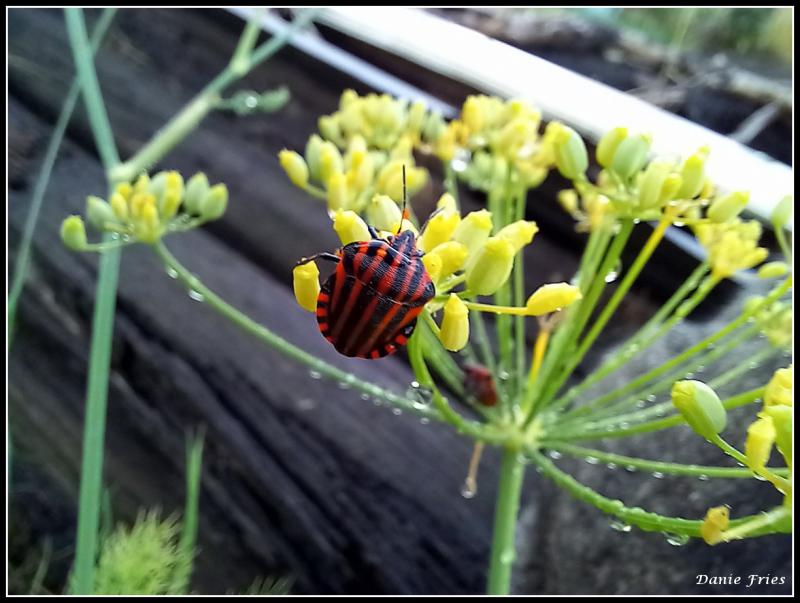 Elle met de la couleur sur les ombelles de fenouil.