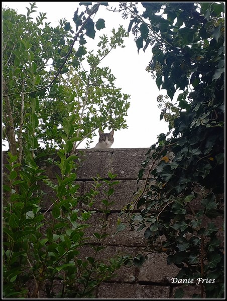 Et voilà, je l'ai retrouvée ! Sacrée Juju, une fois encore j'ai dû sortir l'escabeau pour la faire descendre; elle monte, elle grimpe un peu partout, et souvent je ne sais pas si elle a le vertige ou quoi ! ? lol ! mais elle pleure, elle a peur de descendre, et je dois intervenir ;