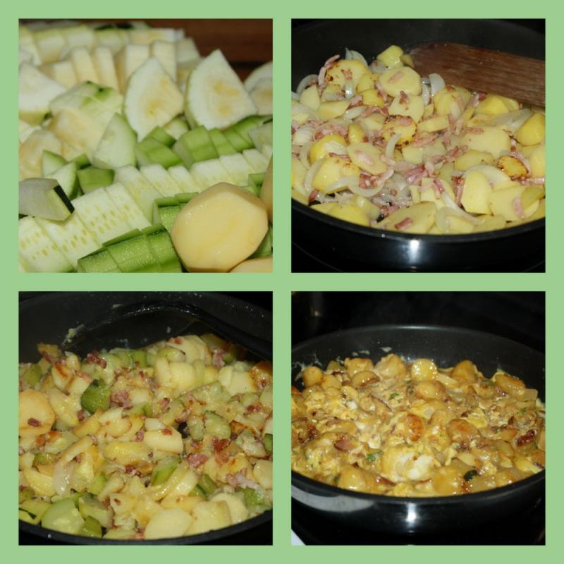Une omelette pas très présentable (avec cette opération râtée!!!), mais l'association pommes de terre, lardons, courgettes et roquefort est si réussie qu'il fallait que je vous donne la recette.
