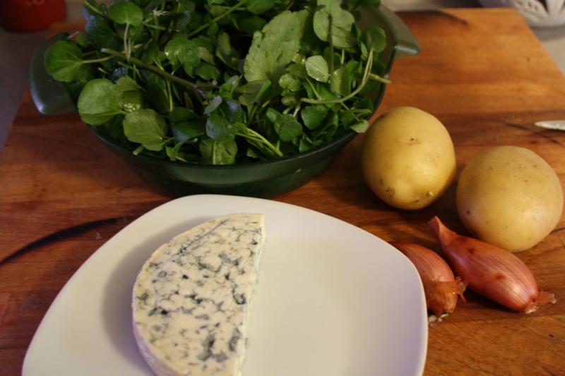 Savez-vous que le cresson présente un taux record de fer et de calcium? Il possède aussi une richesse record en vitamine, surtout en vitamine C, ce qui est bien appréciable à l'approche de l'hiver. C'est une plante vivace des milieux humides et aquatiques (mares, étangs, ruisseaux..), il lui faut une eau claire, peu profonde, à courant lent... Si ce potage vous tente, voici les ingrédients et la recette; Pour 3/4 assiettes; -1 belle botte de cresson -120 g de fourme d'Ambert -2 pommes de terre -2 échalotes -1 petit morceau de beurre. Préparez les légumes, lavez et effeuillez le cresson, pelez et lavez les pommes de terre et coupez-les en dés. Epluchez et émincez les échalotes. Faites revenir les cubes de pommes de terre et les échalotes émincées dans un peu de beurre, laissez-les légèrement colorer.