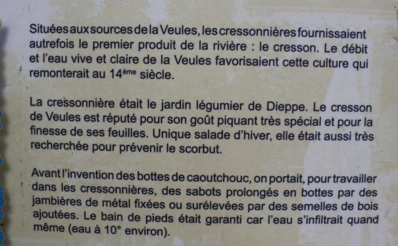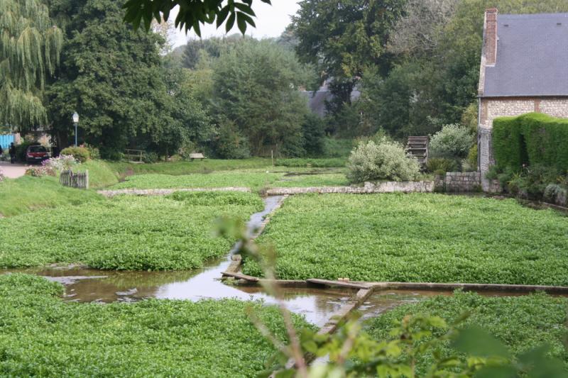 Attention, il est fortement déconseillé de manger du cresson sauvage; celui-ci pouvant abriter la douve, un dangereux ver parasite à l'origine d'une grave maladie du foie; la distomatose. J'en profite pour vous montrer la photo d'une cressonnière se trouvant à Veules-les-Roses, photo prise lors d'une petite escapade dans cette jolie petite ville normande... Si vous ne trouvez pas de cresson, vous pouvez très bien faire ce potage avec de jeunes pousses d'épinard.