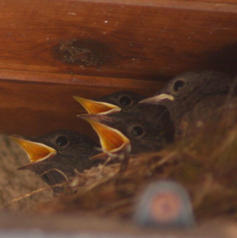 J'ai vu sur internet que les jeunes quittaient le nid sans savoir voler; ils restaient cachés au sol encore plusieurs jours en se nourrissant par leurs propres moyens....et c'est là que j'ai compris pourquoi le chat nous rendait toujours visite en guettant ce qui se qui se passait dans la haie qui bordait la terrasse....j'ai donc nourri le chat, en espérant qu'il ne trouve pas les oisillons!!!!lol