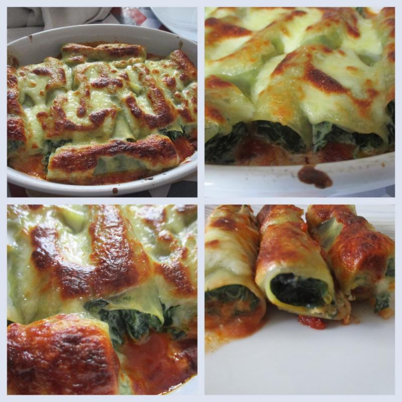 En voyant la recette de Sylvie il y a quelques jours, je me suis rappelée que j'avais des épinards frais à la maison...et aussi les autres ingrédients pour faire cette recette de cannellonis farcis.