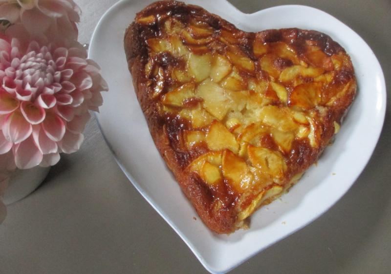 Gâteau-flan au caramel au beurre salé et pommes. |