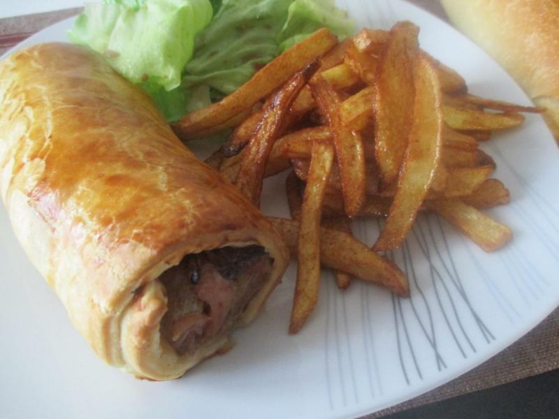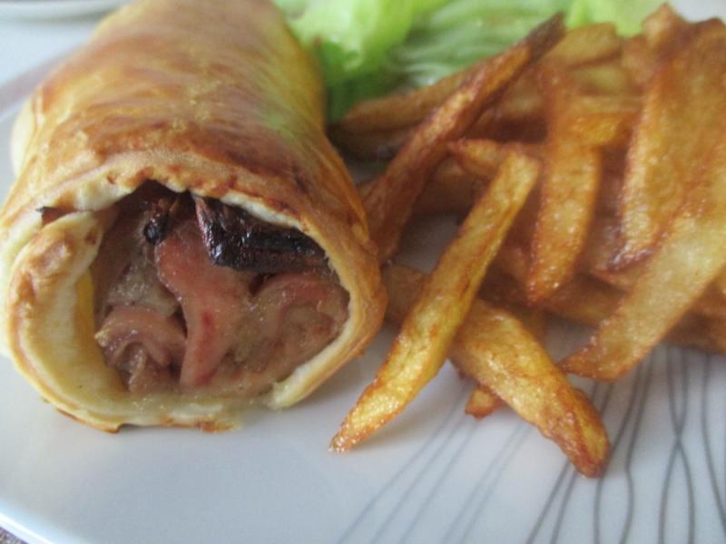 Une petite recette qui ravira les amateurs d'andouillette! Une croustade d'andouillette avec de l'oignon rouge.