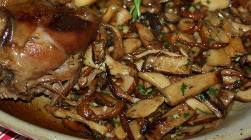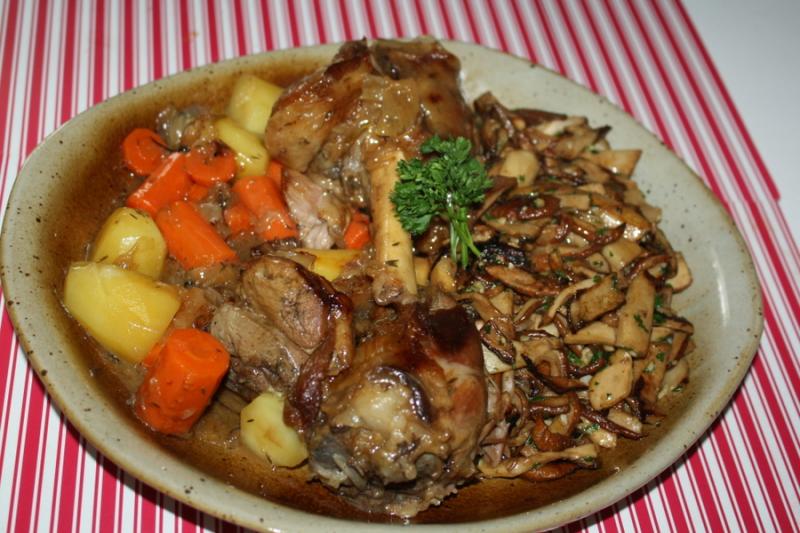 Je sers quand tout est bien fondant, avec une poélée de cèpes à la persillade; un vrai régal!