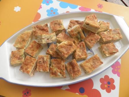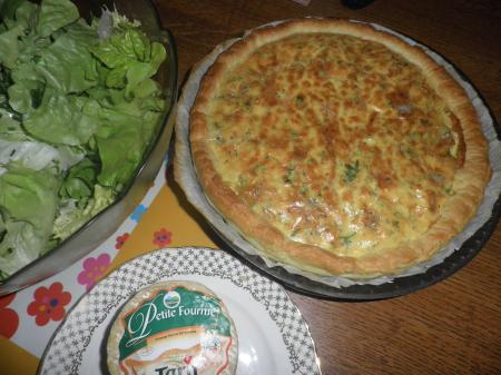 J'ai donc fait une tarte, disons que c'est une simple quiche, j'ai recouvert la pâte de dès de fourme, j'y ai ajoutè des petits lardons allumettes que j'ai fait dorer au préalable, j'ai battu 2 oeufs avec de la crème fraiche épaisse, un peu de persil haché, j'ai ajouté cette préparation sur la fourme et j'ai enfourné pendant 30 mn à 180°.