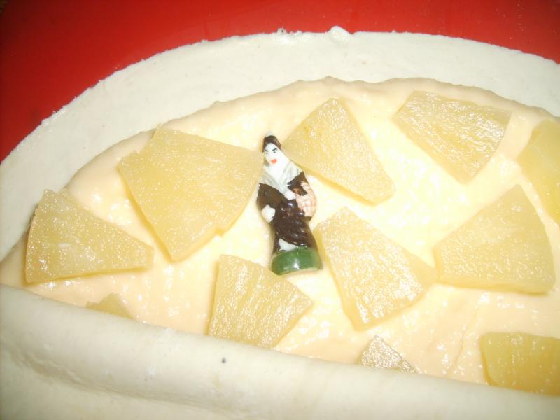 Vous étalez cette crème patissière sur le 1er disque de pâte, ensuite vous disposez dessus les morceaux d'ananas....