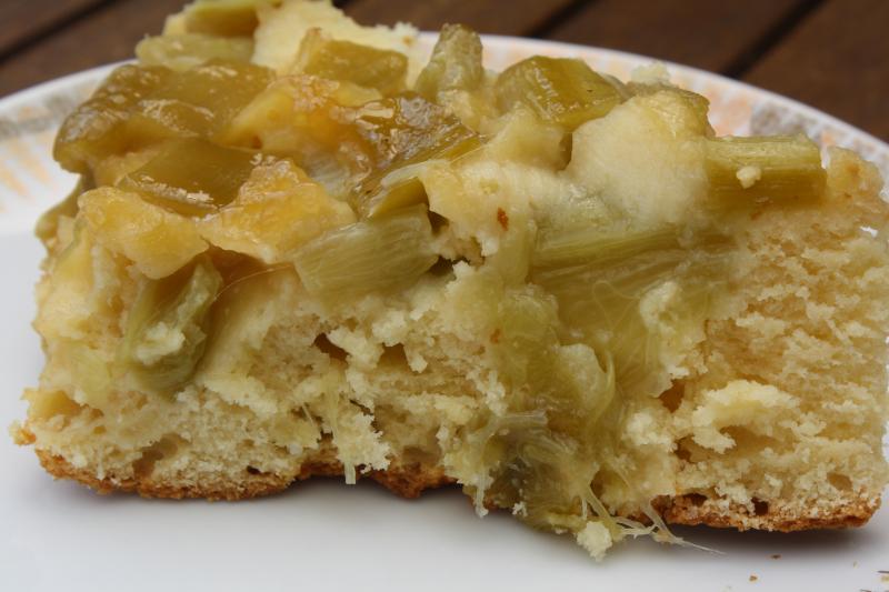 Pour changer un peu de la tarte, j'ai voulu faire un gâteau à la rhubarbe genre 'Tatin'...