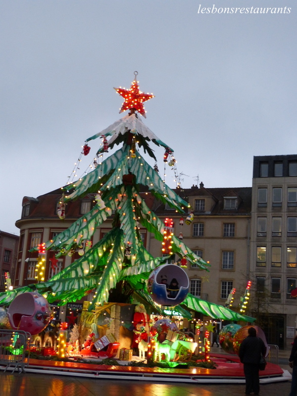 | La place de la République de Metz est une figure emblématique de la ville! Elle a été construite en 1802, alors dénommée place Royale, à côté de l’ancienne citadelle et aux limites de la ville. Aujourd'hui, elle s'est mise aux couleurs de Noël.... Le voyage continue.... Vous pouvez voir ou revoir notre balade sur les marchés de Noël de Metz depuis le début en cliquant sur ce lien! Le marché de Noël de la place de la République accueille la fameuse grande roue! ....60 mètres de diamètres, 62 mètres de hauteur, 320 tonnes.... Impressionnante! Non? Elle offre une vue imprenable sur le centre ville proche mais aussi sur ces petits chalets...les premiers d'une longue série! Les enfants ne sont jamais oubliés...Mais pas que les enfants...Les plus grands ont, eux aussi, leurs rêves! Comme vous le voyez, le Père Noël est encore dans sa bulle...il ne faut pas le déranger! Quelques vitrines plus loin..... ...nous nous dirigeons vers l'Espace Saint-Jacques! À demain!