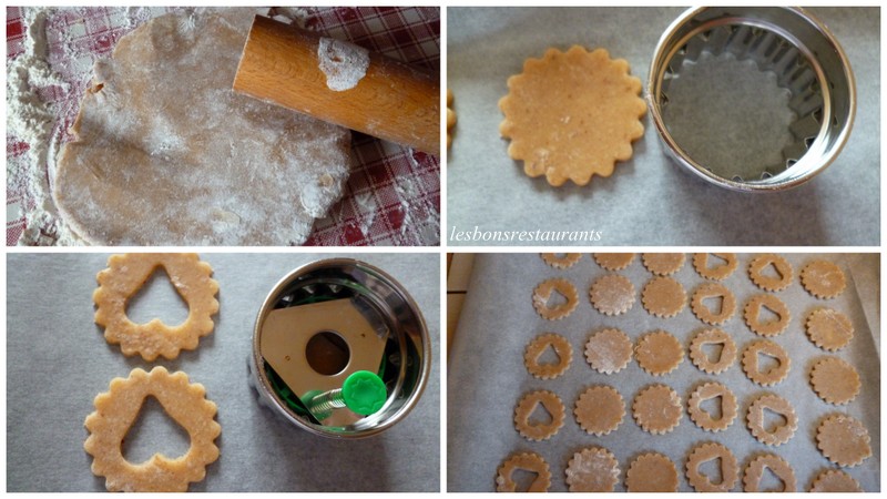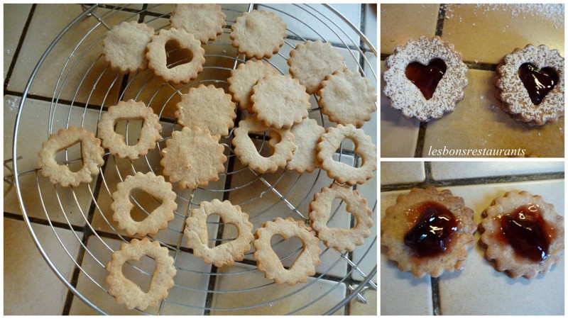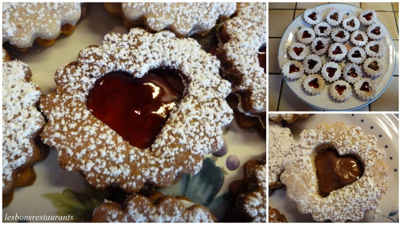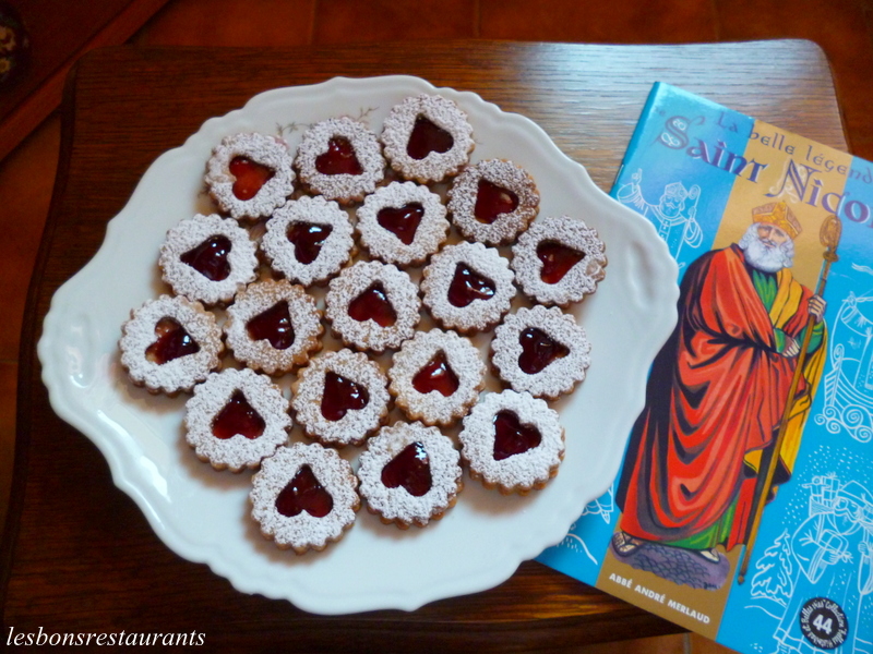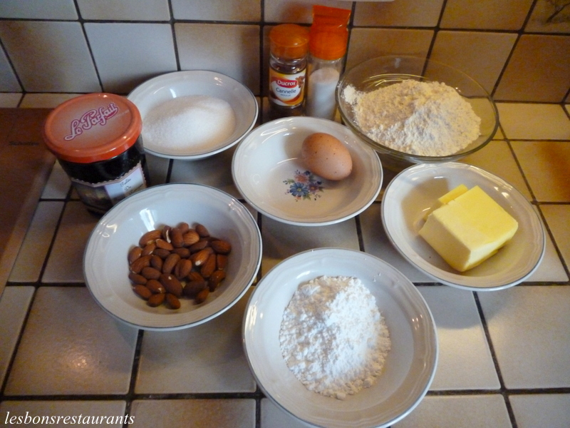 | Marc et moi aimons regarder l'émission "Midi en France". Après être passée à Thionville en Moselle, où nous avions relevé cette délicieuse recette de "Kniedels de Marie-Jeanne" (voir la recette sur ce lien), toute l'équipe a poursuivi son chemin vers l'Alsace! Et là, encore une fois, nous sommes tombés sous le charme d'une recette incontournable de ce terroir....les fameux "Bredeles"! En alsacien, les bredeles ou plus spécifiquement Winachtsbredeles sont des petits fours qui sont aujourd'hui confectionnés à l'occasion des fêtes de fin d'année. Il en existe, bien sûr, de nombreuses formes et de saveurs différentes! Aujourd'hui, je cuisine les Spätz Buawa ou Petits Coquins de Gérard Mayer! Et comme j'ai trouvé le moule indispensable sur le marché de Noël de Riquewihr......alors (voir l'article sur ce lien)!   Les ingrédients pour cette recette: -120g de sucre -sel -1 oeuf -220g de farine -25g d'amandes en poudre -125g de beurre -1 càc de cannelle -100g de gelée de fruits rouges -1 peu de Nutella pour les plus gourmands.... -50g de sucre glace Cassez l’œuf dans une terrine.  Ajoutez le sucre et le sel. Incorporez la farine, la poudre d’amande et la cannelle. Sablez le mélange en effritant du bout des doigts. Ajoutez le beurre coupé en petits morceaux. Pétrissez pour former une boule. Laissez reposer 1h au frais.   Abaissez la pâte sur une épaisseur de 2 à 3 mm. Découpez des disques de formes rondes et les disposer sur une tôle beurrée. Utilisez la seconde forme pour réaliser autant de sablés troués que de sablés pleins.   Faites cuire vos gâteaux 6 minutes à four moyen à 180°.  Laissez-les refroidir. Recouvrez les disques de confiture ou de Nutella. Saupoudrez les anneaux de sucre glace. Enfin, accoler les disques et les anneaux.   Il n'y a plus qu'à déguster! Bon appétit! Vous pouvez retrouver d'autres idées desserts sur ce lien. Vous pouvez retrouver d'autres recettes de petits gâteaux sur ce lien. Vous pouvez retrouver d'autres recettes alsaciennes sur ce lien.