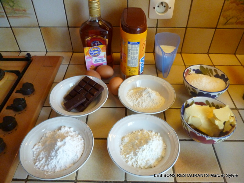 -50 g de farine -50 g de fécule -125 g de beurre ramolli -100 g de sucre glace -3 oeufs -80 g de chocolat noir -1 càs de cacao -15 cl de lait -70 g de noix de coco râpée -1 sachet de levure chimique -2 càs de mirabelle Préchauffez le four à 210°.