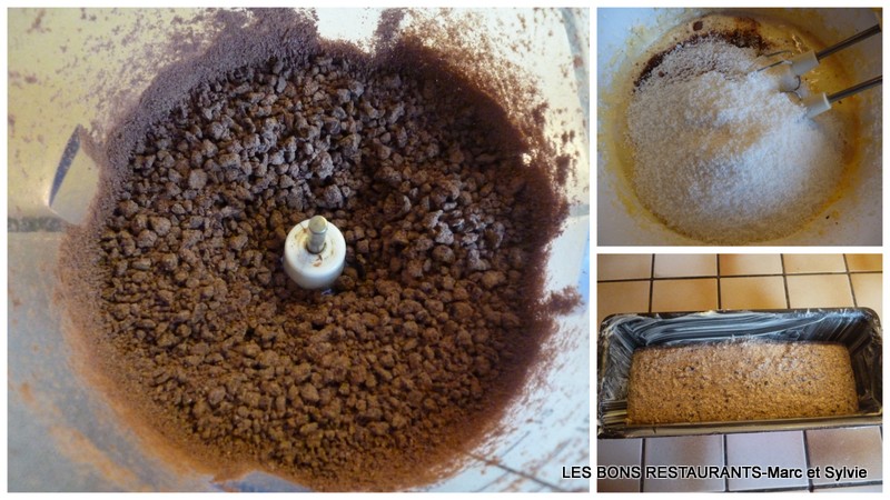 Râpez le chocolat noir avec une râpe à fromage....moi j'ai passé mon chocolat au hachoir! Mélangez le beurre ramolli avec le sucre glace jusqu'à obtenir une crème onctueuse. Incorporez les oeufs un à un, puis ajoutez la fécule et la farine, dans laquelle vous aurez incorporé la levure. Ajoutez ensuite le lait, le cacao, le chocolat râpé, la noix de coco et l'alcool de mirabelle. Mélangez bien. Versez la pâte dans un moule à cake beurré et fariné. Mettez au four 40 minutes, après avoir baissé la température à 180 °. La pâte est assez liquide, ne vous étonnez pas!