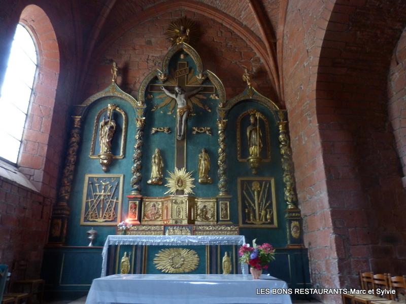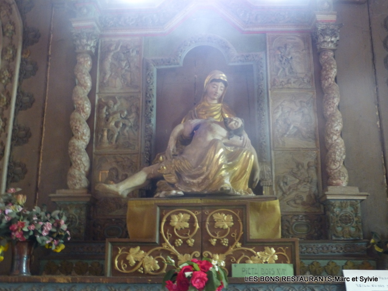 L’autel de la chapelle sud, son gradin, son tabernacle et le retable, en bois sculpté et doré et représentant la Passion, date du 17e siècle.