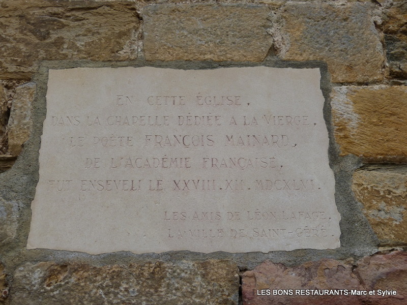 "En cette église, dans la chapelle dédiée à la Vierge, le poète François Mainard de l'Académie Française, fut enseveli le 28 décembre 1646."