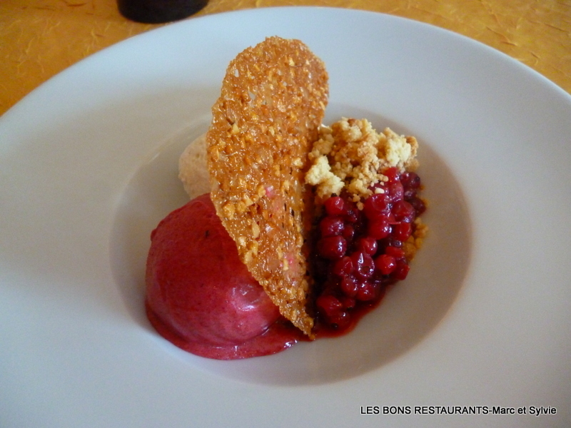 Je reste très classique, et je suis épatée par cette panacotta au chocolat blanc, cachée par le croquant, des fruits rouges et un crumble.