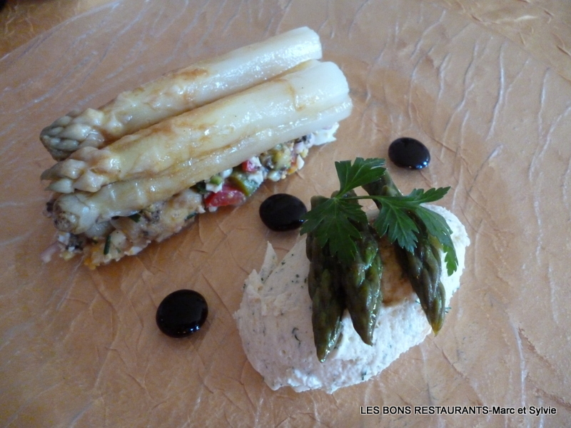 Pour ma part, je choisis la mousse d'asperges à l'aneth et son mimosa aux olives.