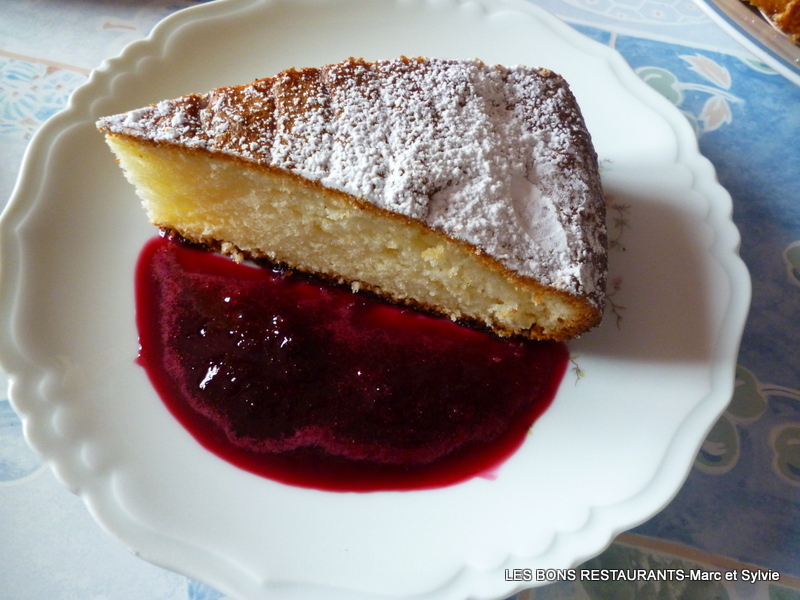 J'ai choisi de servir mon gâteau au yaourt et à la mirabelle avec un coulis de cassis.