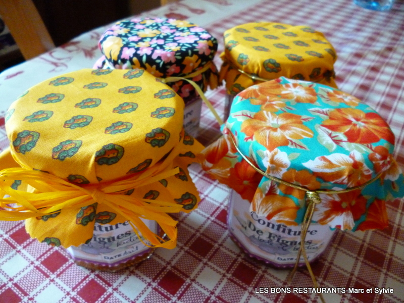 Versez la confiture dans les pots et fermez-les aussitôt. Retournez les pots et laissez-les refroidir. Vous me connaissez bien....Je ne peux m'empêcher de mettre à mes pots une étiquette, un joli chapeau ainsi qu'un beau ruban... Et maintenant...Qui apporte la brioche?